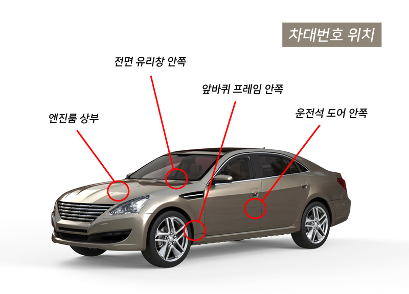 차종별 차대번호의 위치를 확인해주시길 바라요.