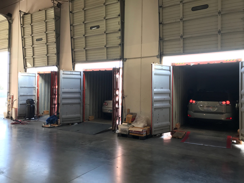 타던 자동차를 컨테이너에 선적하여