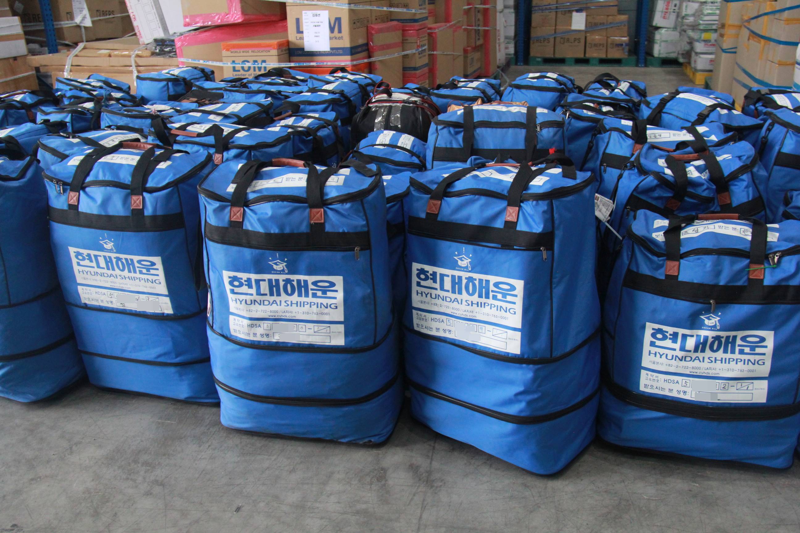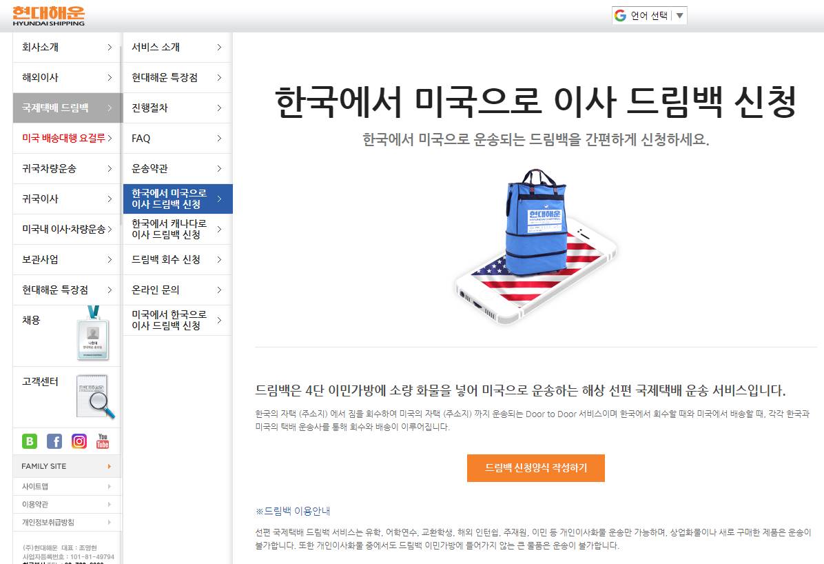 드림백 이용신청, 결제안내, 빈 이민가방 출고, 현대해운 물류센터 드림백 입고 등