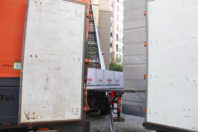 현대해운 해외이사 작업장의 품목별 포장 장면은